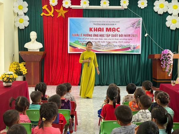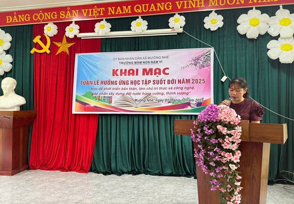 Sáng ngày 01/10/2025 trường mầm non Nậm Vì tổ chức khai mạc tuần lễ hưởng ứng Tuần lễ học tập suốt đời năm 2025 với chủ đề: Học để phát triển bản thân, làm chủ tri thức và công nghệ, góp phần xây dựng đất nước hùng cường, thịnh vượng”. Đây là một sự kiện có ý nghĩa to lớn, không chỉ đối với nhà trường mà còn đối với mỗi gia đình, mỗi người dân trong công cuộc xây dựng quê hương, đất nước.